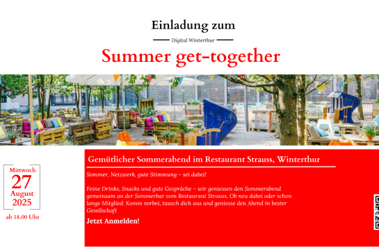 Ein ungezwungener Sommerabend für Mitglieder von Digital Winterthur – mit Drinks, Streetfood und inspirierendem Networking unter freiem Himmel. 💸 Jede:r konsumiert auf eigene Rechnung
