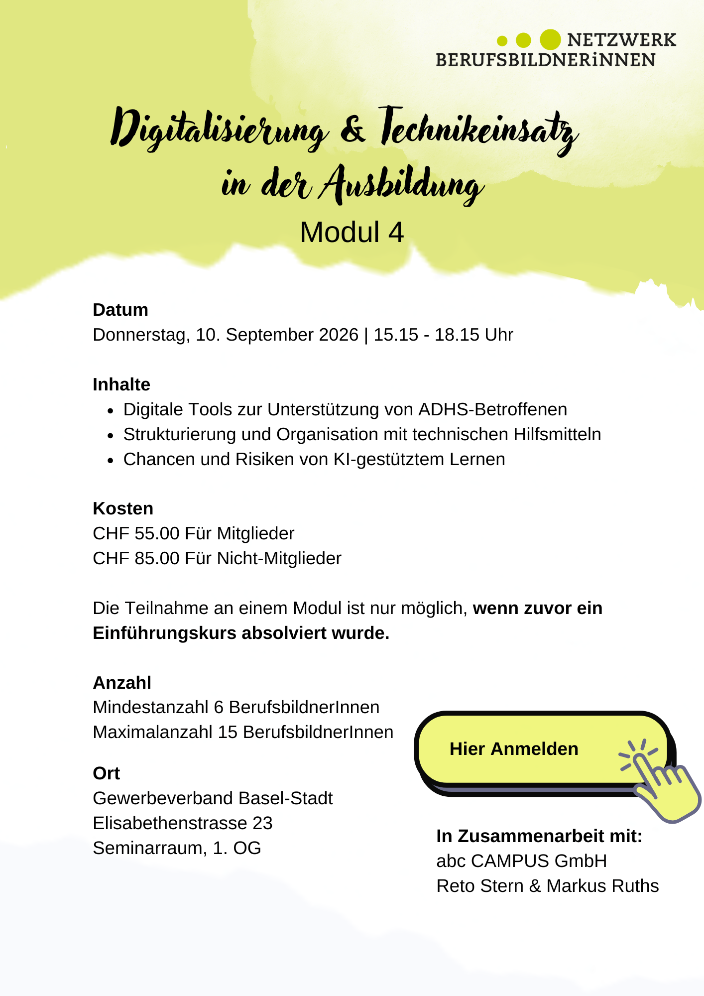 Voraussetzung für eine Anmeldung ist die Teilnahme am Einführungs-Workshop.