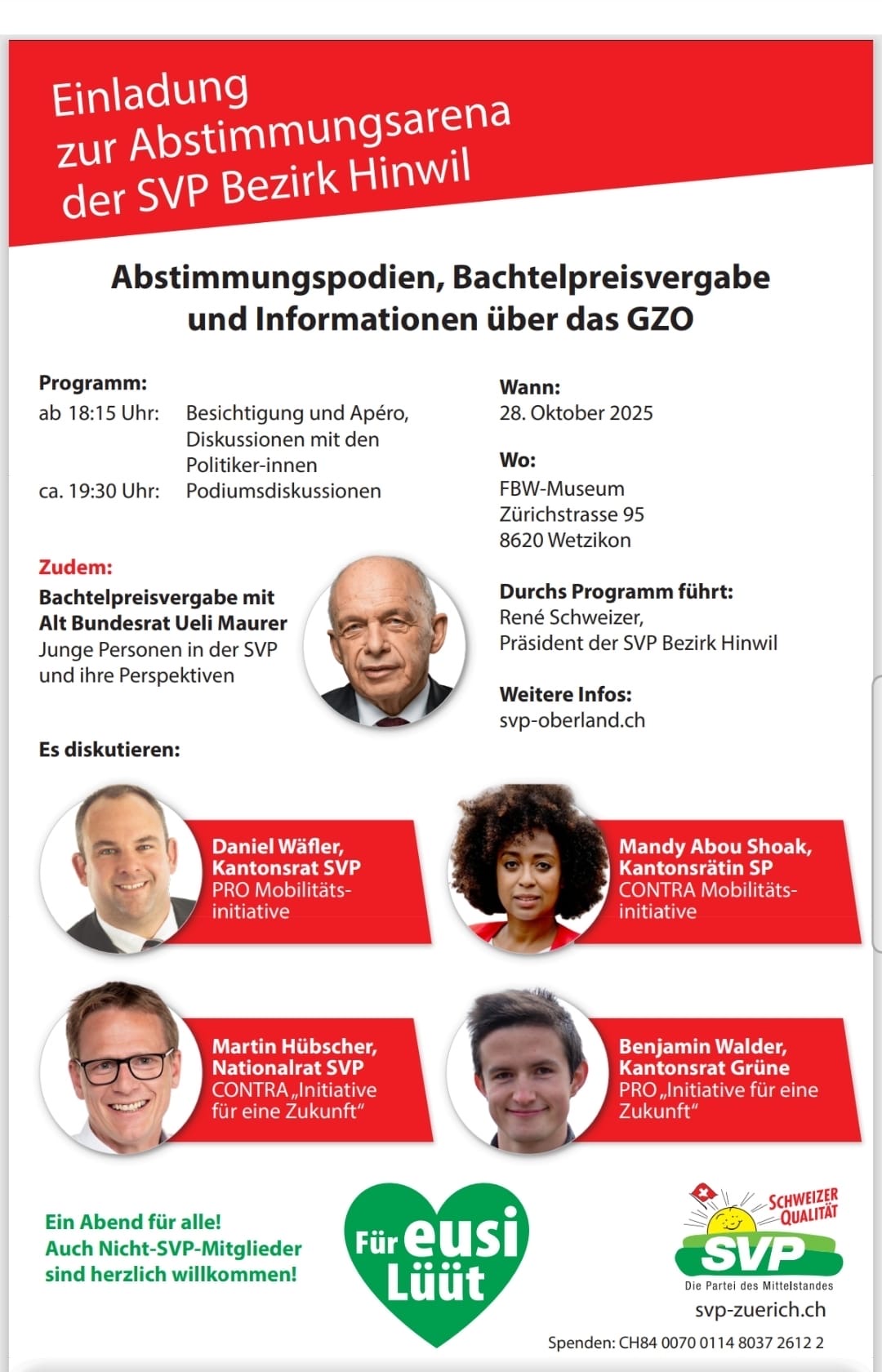 Abstimmungsarena zur SVP Bezirk Hinwil
