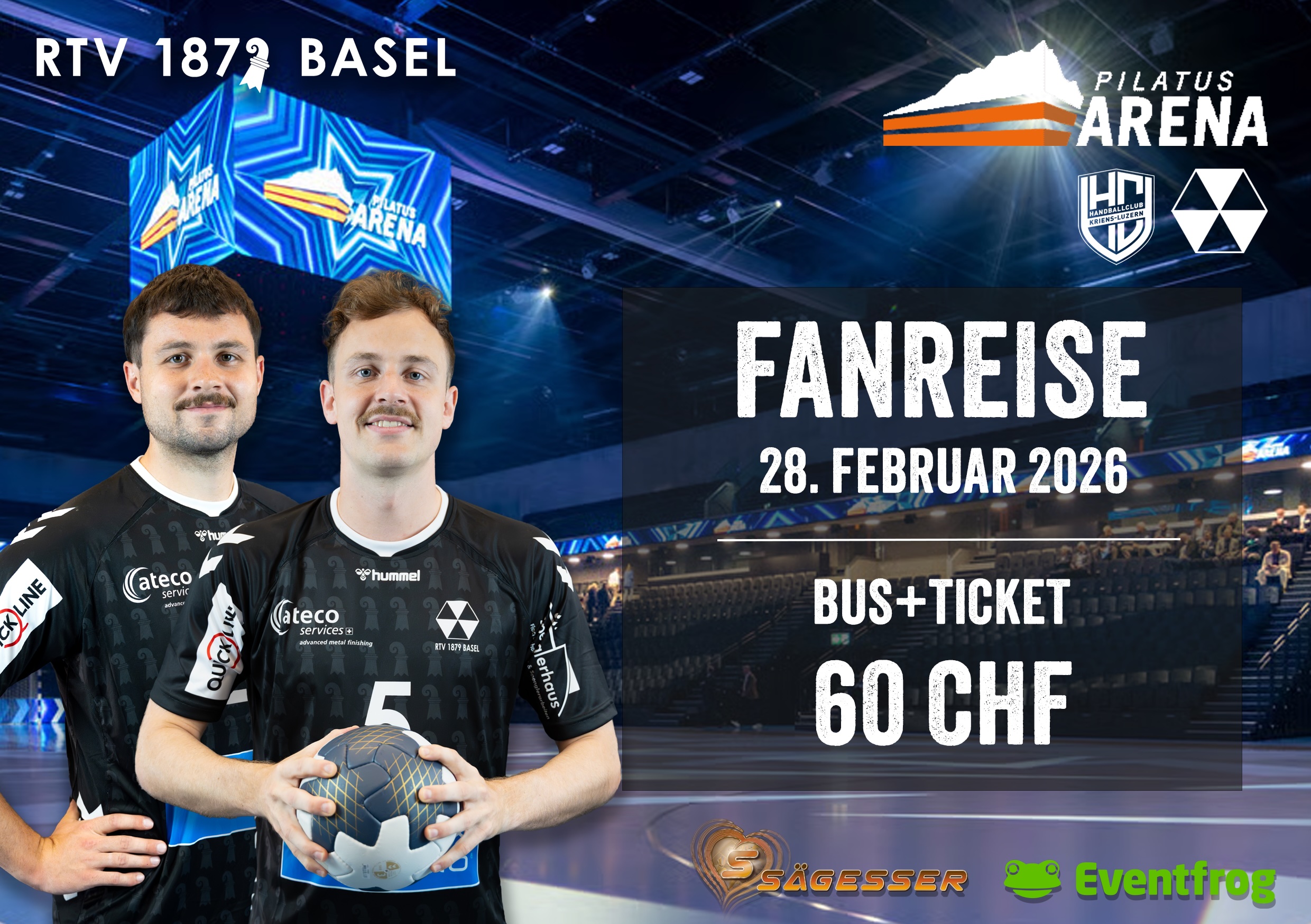 Sei dabei beim Auswärtsspiel am 28. Februar 2026 des RTV 1879 Basel auswärts in der neuen Pilatus Arena gegen den HC Kriens-Luzern.