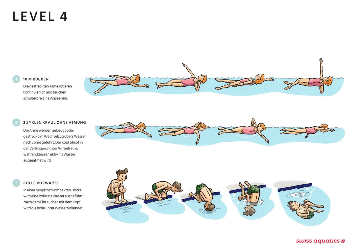 Level 3 - Level 7 werden von unseren SchwimmleiterInnen in der Garderobe und Dusche nicht begleitet. Die Kinder ziehen sich selbständig um.