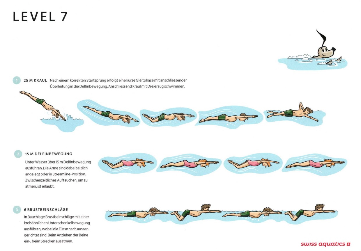 Level 3 - Level 7 werden von unseren SchwimmleiterInnen in der Garderobe und Dusche nicht begleitet. Die Kinder ziehen sich selbständig um.