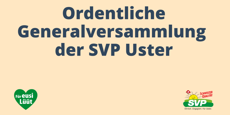 Gleichzeitig richten wir den Blick nach vorne: Welche Themen bewegen Uster? Wo setzen wir als SVP die Schwerpunkte in der kommenden Legislatur? Welche Weichen müssen wir als Partei stellen? Die Generalversammlung bietet Raum für Mitwirkung, Austausch und den direkten Draht zur Parteileitung.