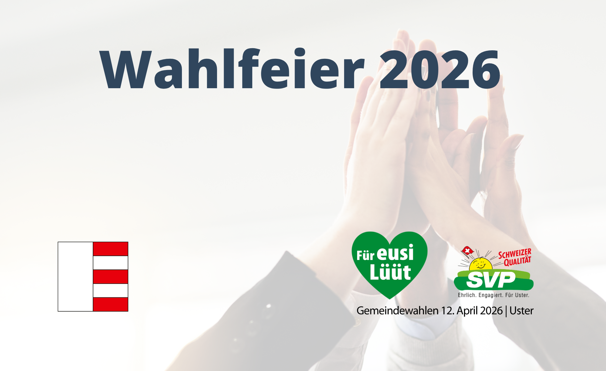 Zusammen mit unseren Kandidatinnen und Kandidaten warten wir gespannt auf die Resultate, tauschen uns aus und erleben den Wahlabend in kollegialer Atmosphäre. Hoffentlich gibt es dabei auch Grund, gemeinsam auf einen Erfolg anzustossen.