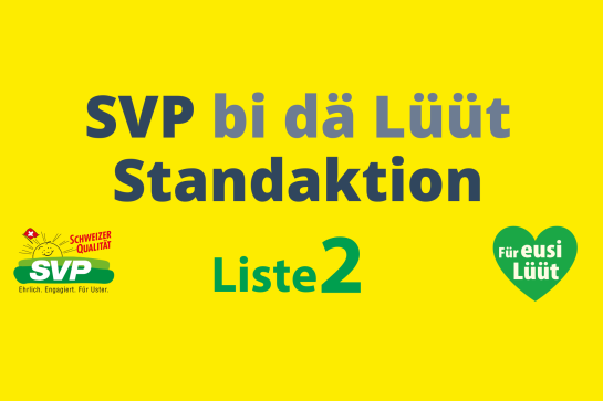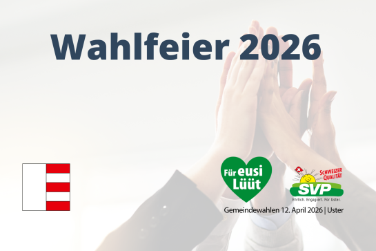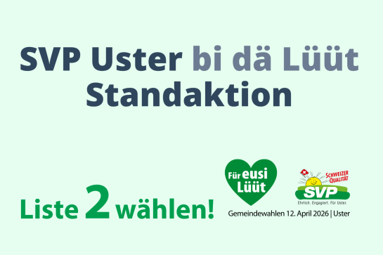 Wir von der SVP Uster sind mit einem eigenen Stand vertreten und nutzen diesen Anlass als Auftakt für die Gemeindewahlen unter dem Motto «Für eusi Lüüt». Geplant ist ein gemütlicher Standbetrieb mit Raclette.